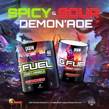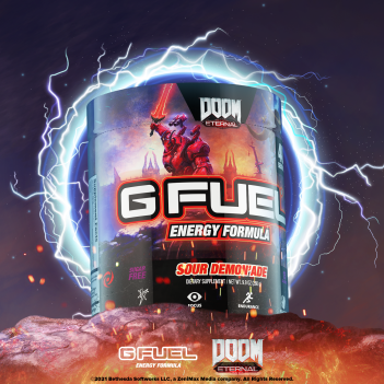“We’re excited to take our partnership with Bethesda Softworks to the next level and unleash the new G FUEL Sour Demon’ade and Spicy Demon’ade Reskin on DOOM Slayers around the world, just in time for The Ancient Gods Part 2 teaser trailer that dropped today,” said G FUEL Founder and CEO, Cliff Morgan. “Armed with both hellishly energizing and complementary G FUEL flavors, our fans are bound to finally seal the demons within Hell — for good.”