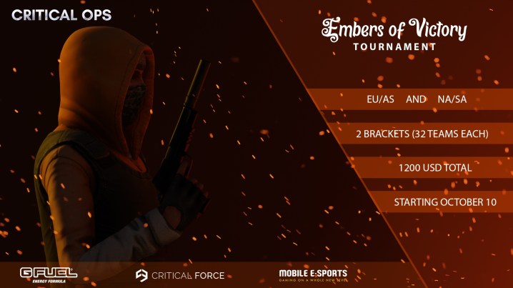 We are really excited to announce our latest Critical Ops tournament, Embers of Victory. This is a special one because it will have two separate brackets, one for NA / SA teams and another for EU / ASIA teams. This means that there will be two victorious teams once the tournament concludes. Be part of a growing esports scene and sign up!