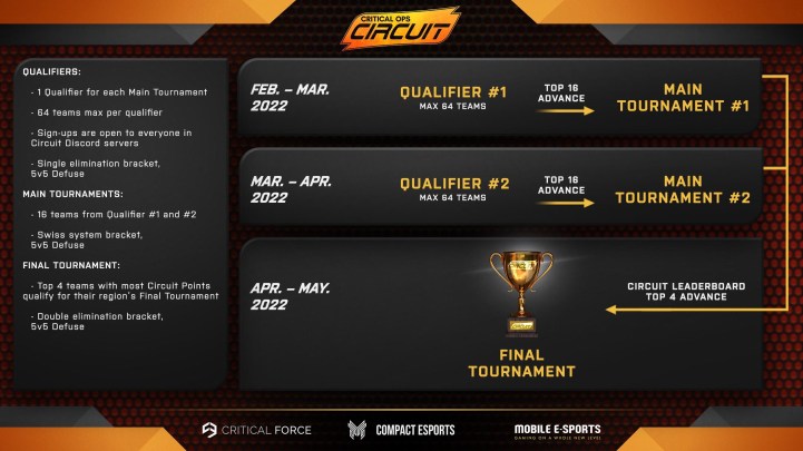There are exciting prizes for the top teams so don’t miss out on this competitive Critical Ops tournament. As you can see this year has plenty of competitive tournaments with lots of prizes so prepare your teams. Finally, you can see the Circuit’s tournament system below.