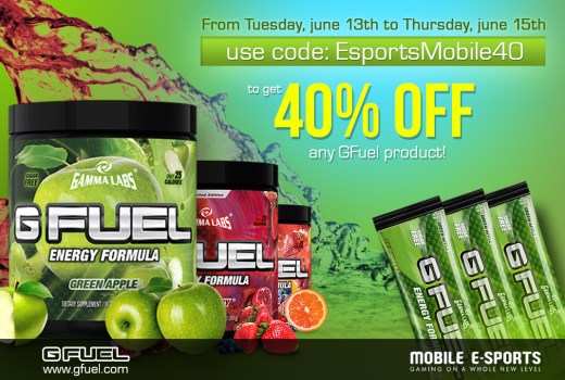 Today, we are announcing the best deal that you can possibly have when buying G FUEL products! Starting from Tuesday (June 13th) until Thursday (June 15th), you will be able to use our new code ”EsportsMobile40” in order to get 40% off your entire purchase! This is only possible for a limited time since it’s an exclusive deal. Make sure to visit G FUEL’s website at www.gfuel.com in order to purchase. Continue reading